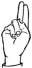 На ћирилици написано КАЗИМИР РУДЈА састоји се из 12 слова [?]. Исписано ћириличном једноручном азбуком за глувонеме: